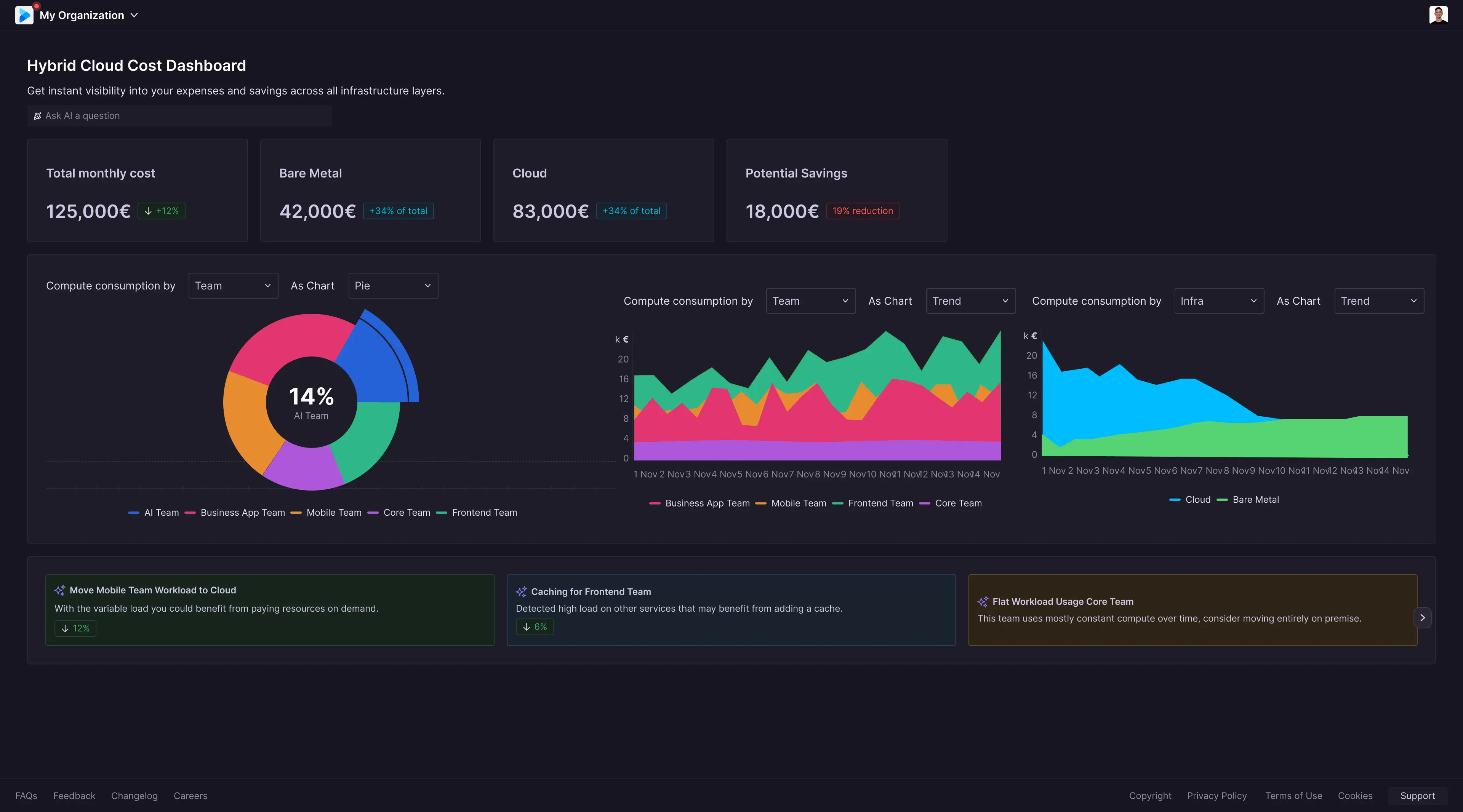 Decision makers understandably need insights into the compute costs each team creates in order to maintain levels reasonable over time, find optimizations and react accordingly.