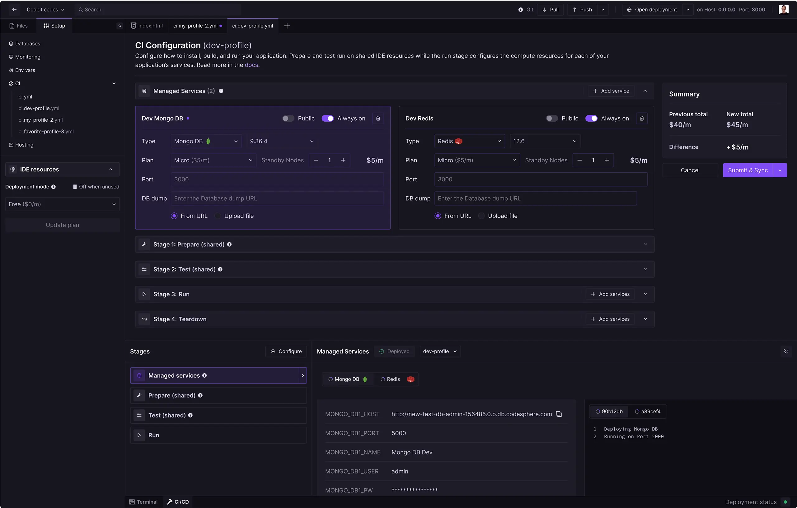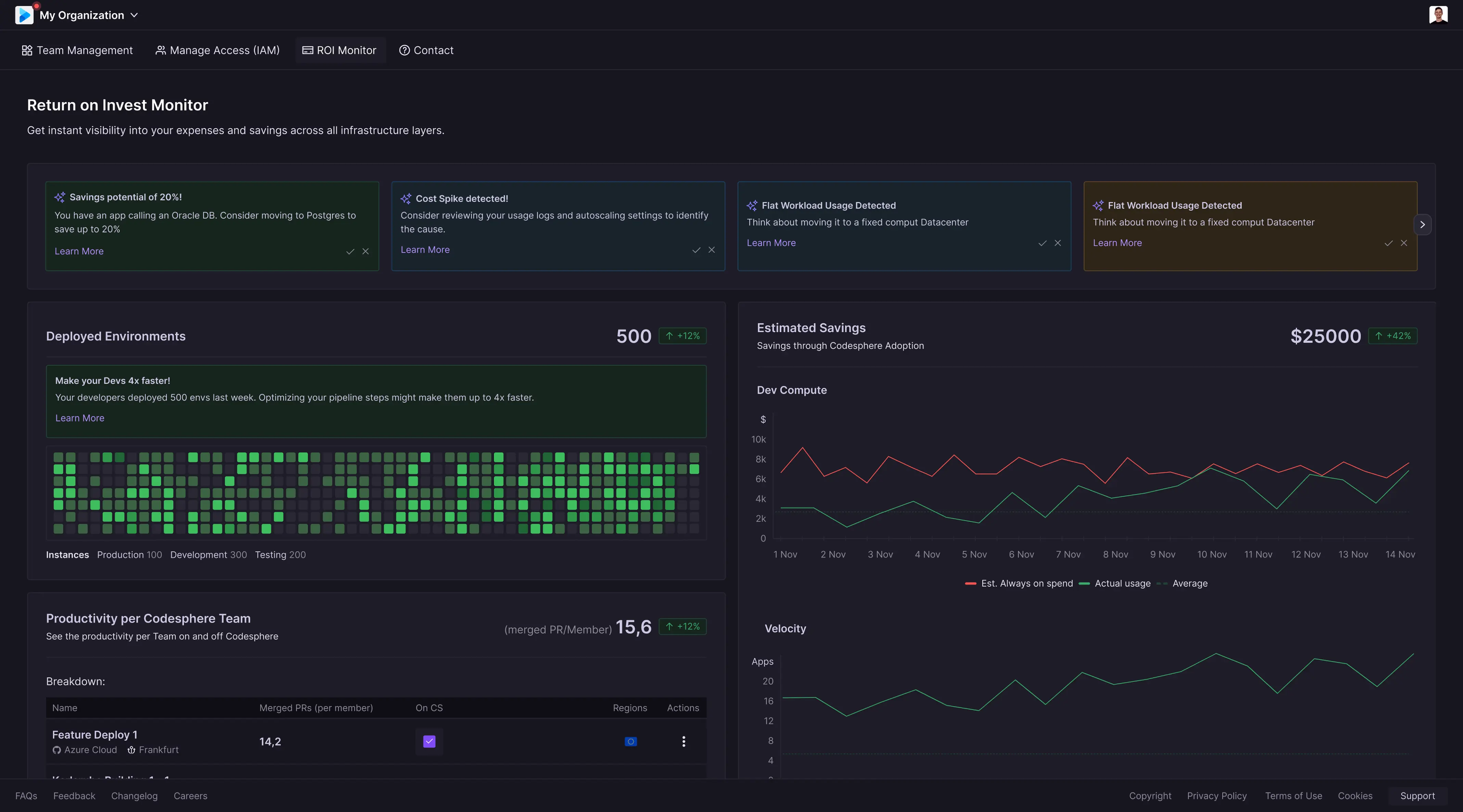 Every feature branch and master gets automatically deployed from git (GitHub, Gitlab, Bitbucket & others) and available via the collaborative web IDE. This reduces the time developers wait for local to be checked out and built and facilitates true shift left.